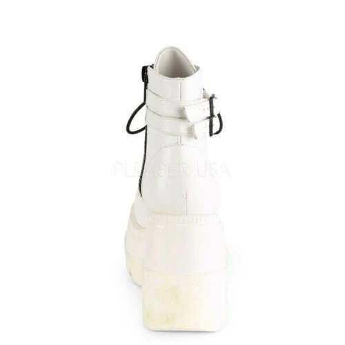 Demonia Shaker 52 White Stacked Wedge Ankle Boots