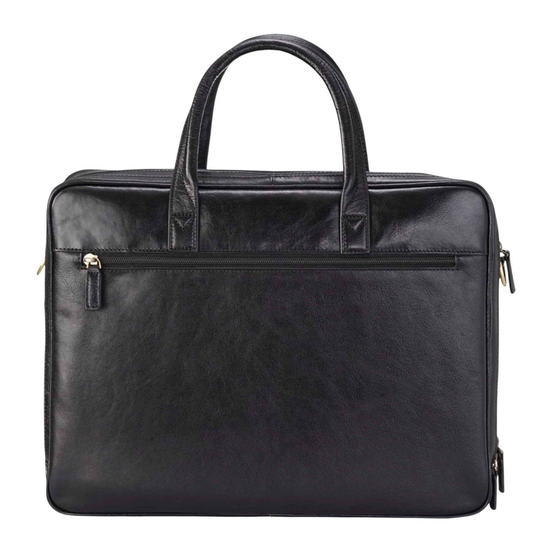 Genuine Leather Laptop Black Satchel Messenger Crossbody Shoulder Bag - Belmont