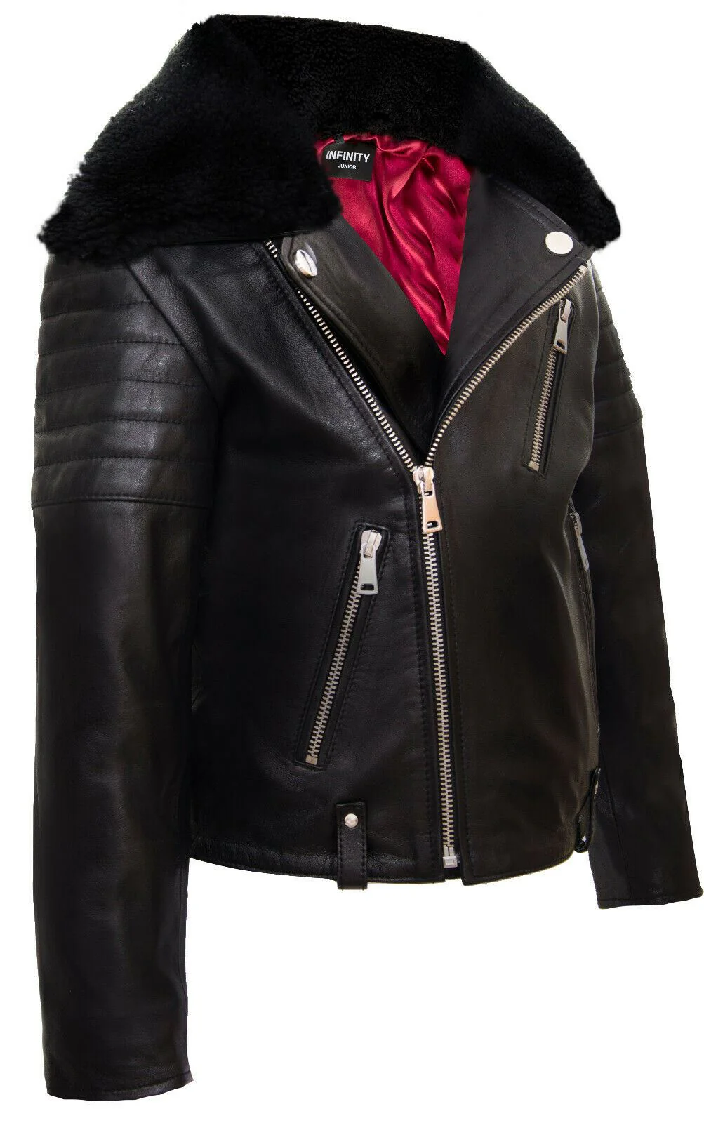 Kids Jackets Boys 100% Leather Detachable Collar Biker Jackets (3-13 Years)