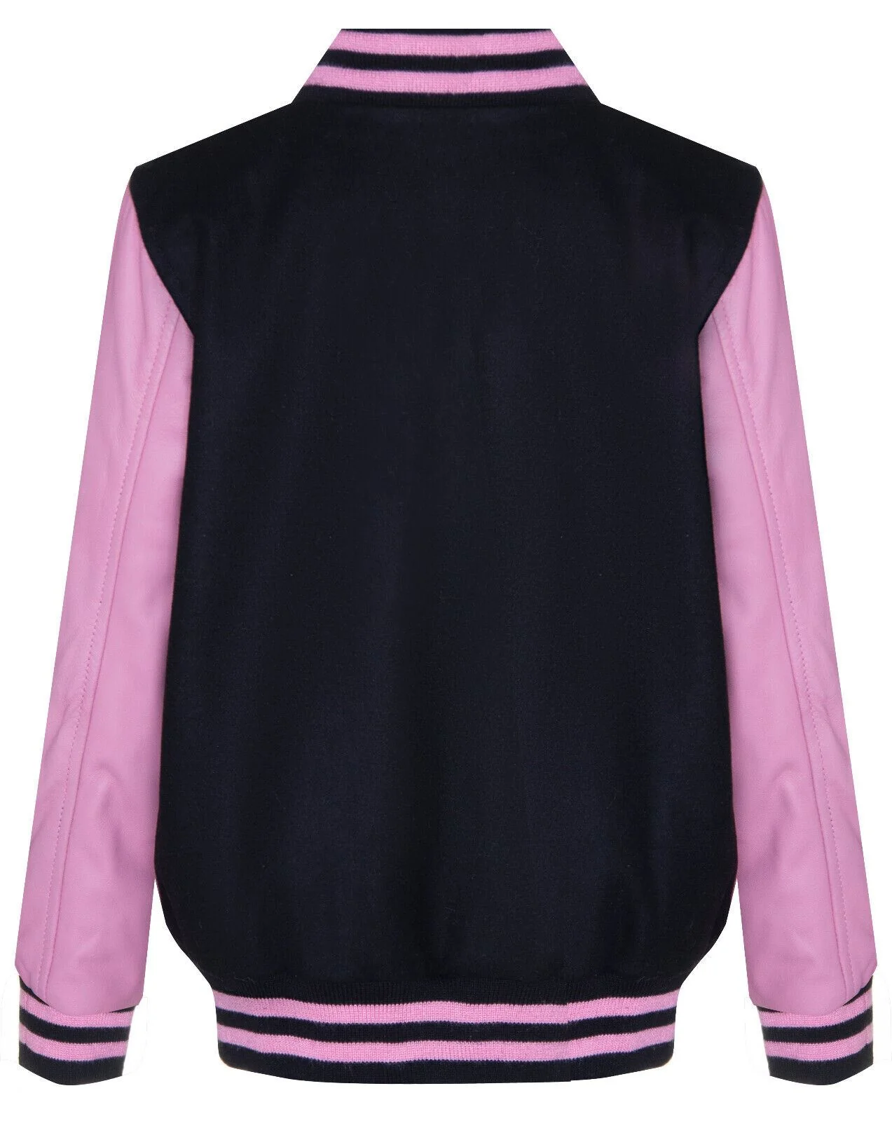 Kids Varsity Black & Pink Bomber Jacket with Real Leather Sleeves 3-13 yrs
