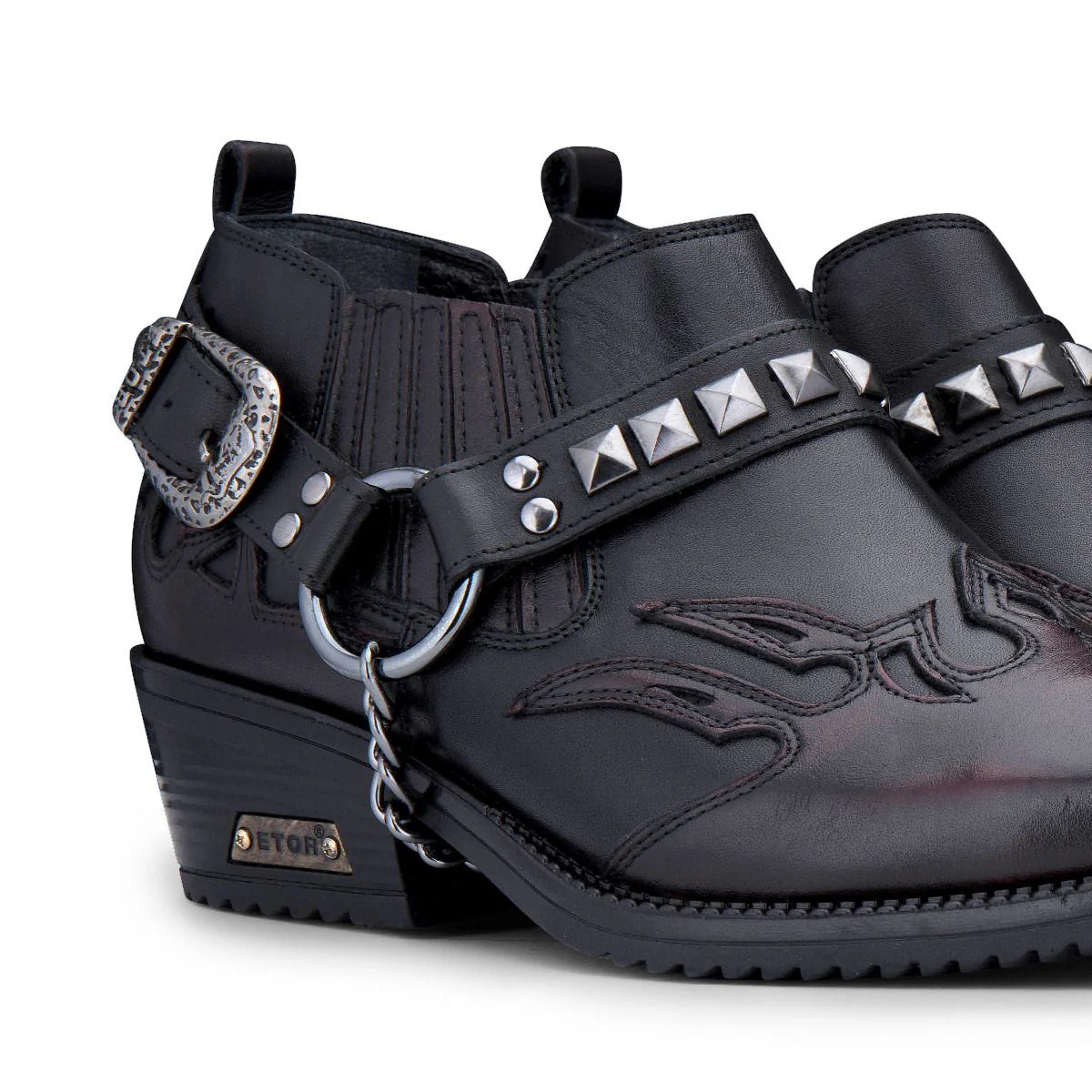 Men’S Black Leather Winklepicker Studded Western Biker Boots
