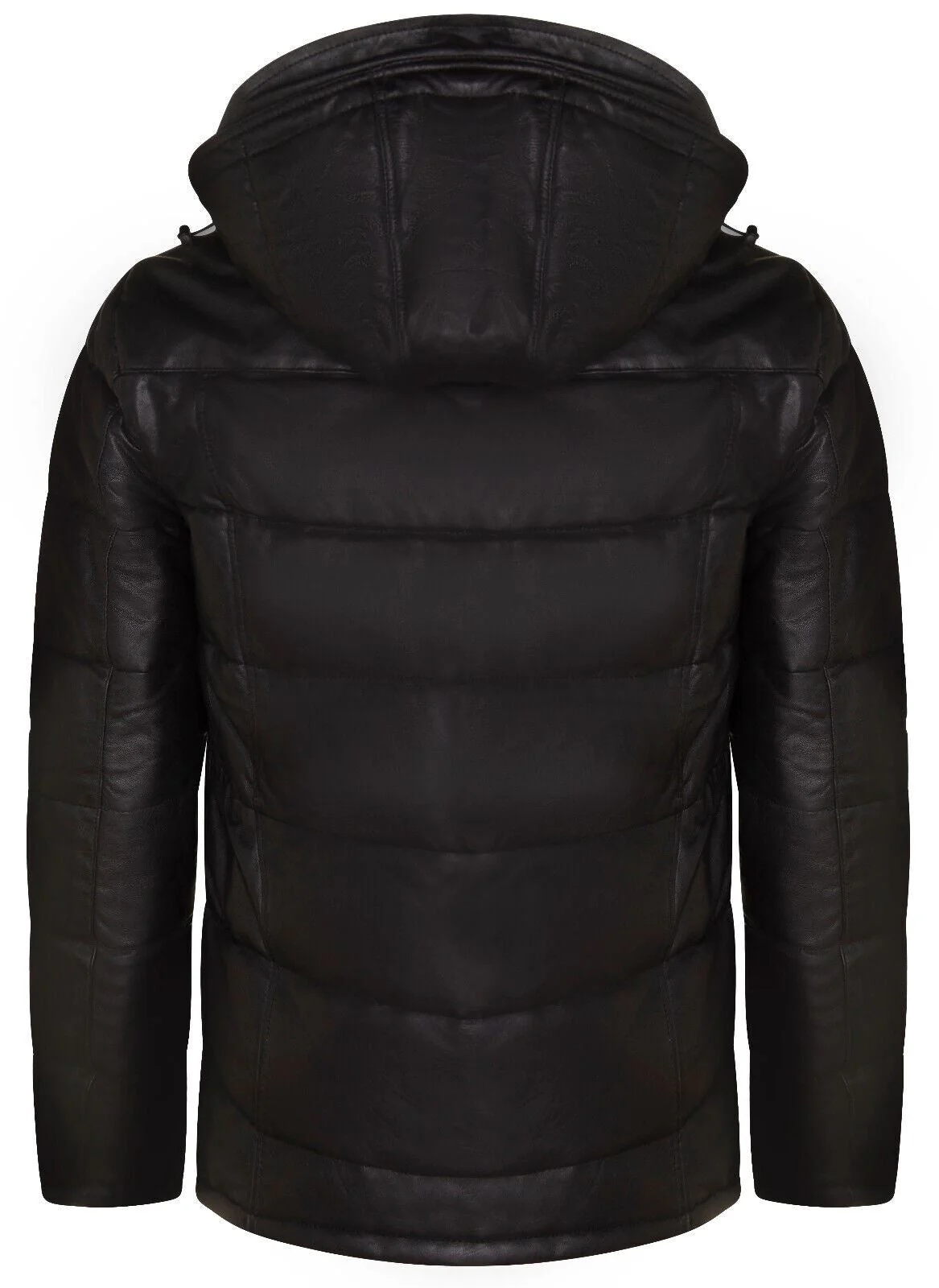 Mens Black Puffer Leather Quilted Warm Bomber Hooded Jacket