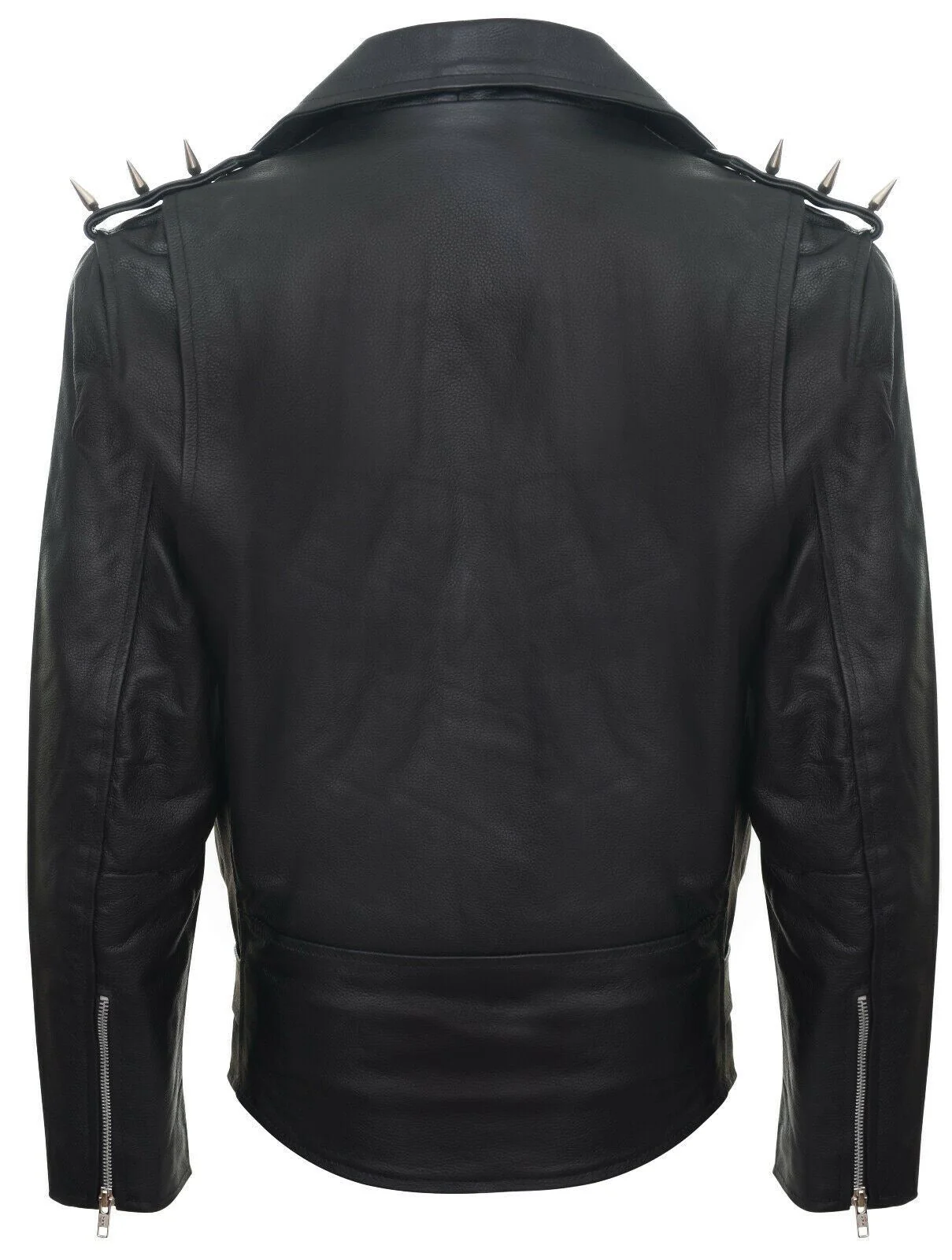 Mens Brando Black ''Ghostrider'' Spiked Leather Biker Jacket