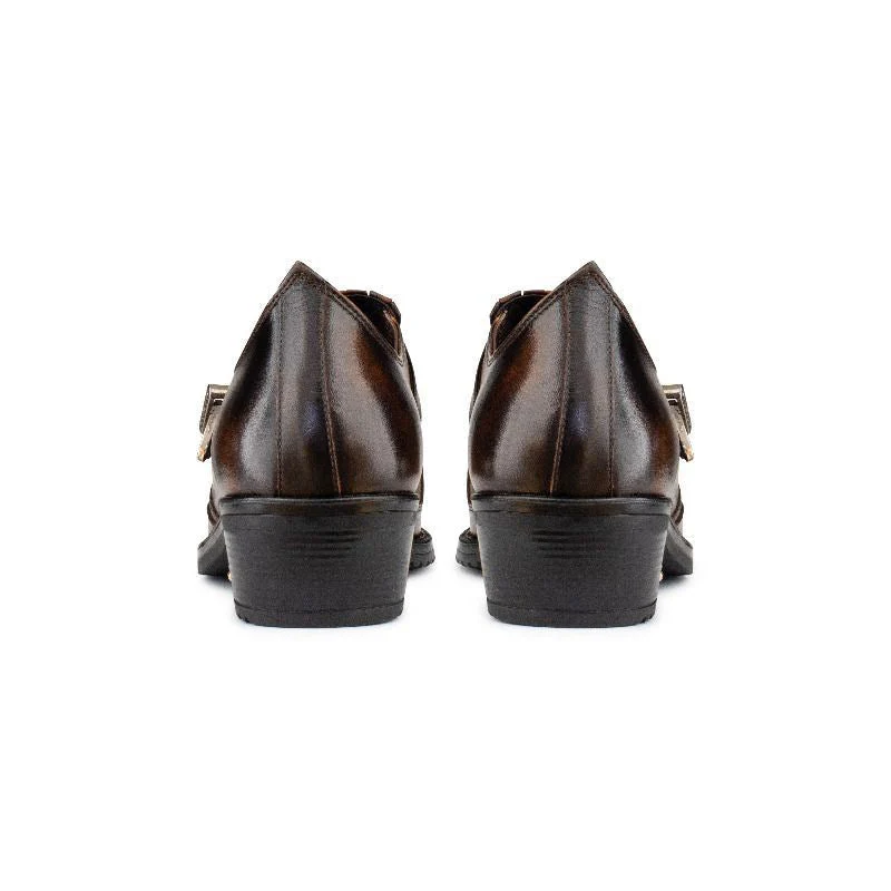 Distinctive Design: The shoe boasts a pointed toe and a 2" Cuban heel, combining classic elements with contemporary style for a unique and eye-catching appearance.
