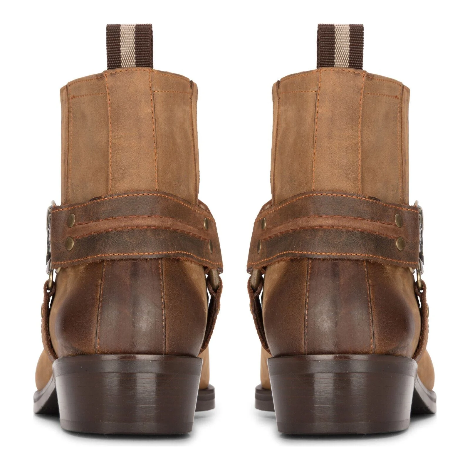 Mens Leather Cowboy Ankle Boots Brown Tan Biker Western Square Toe Hunting Boot