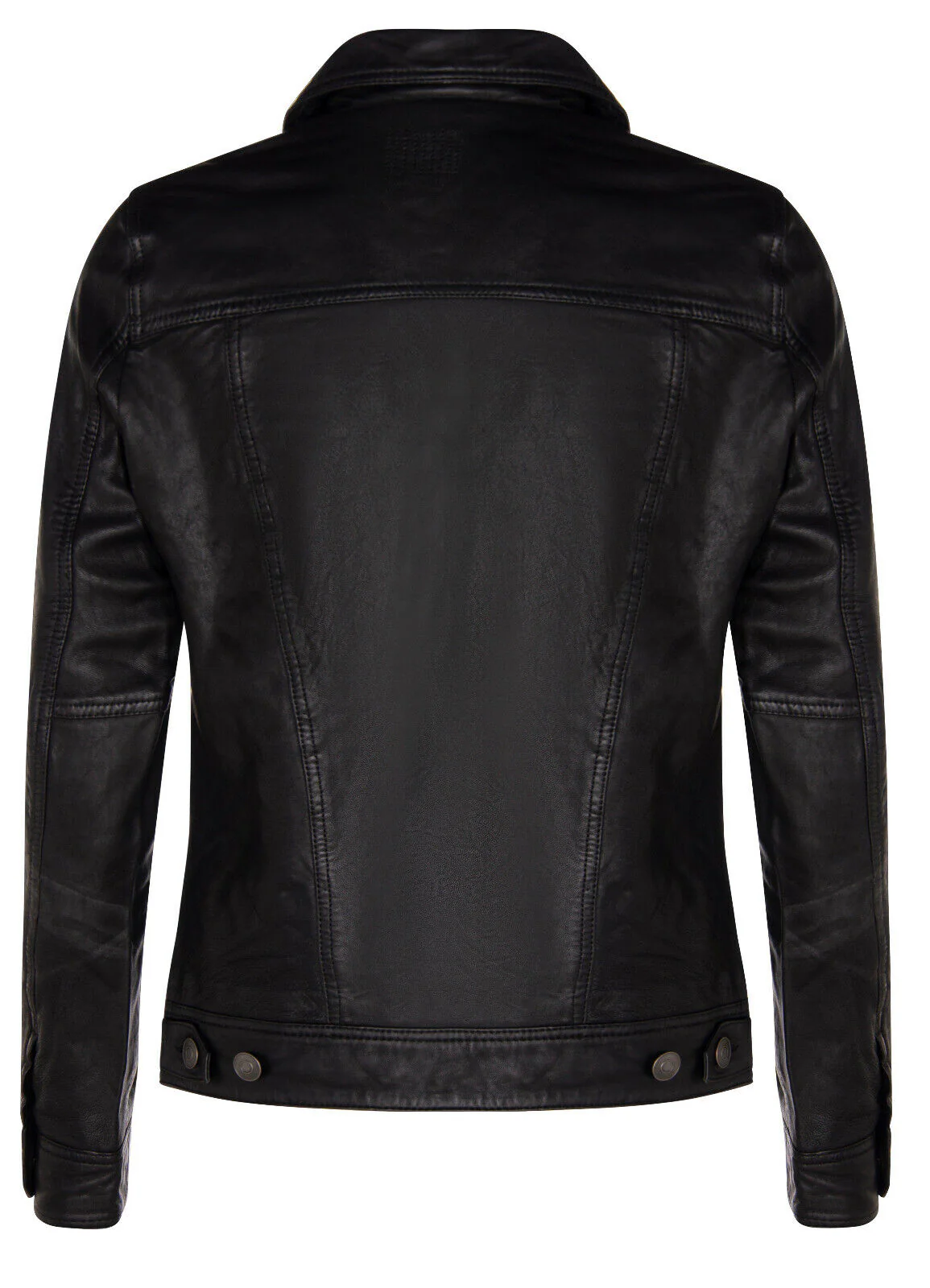Mens Trucker Slim Fit Black Leather Shirt Jeans Jacket