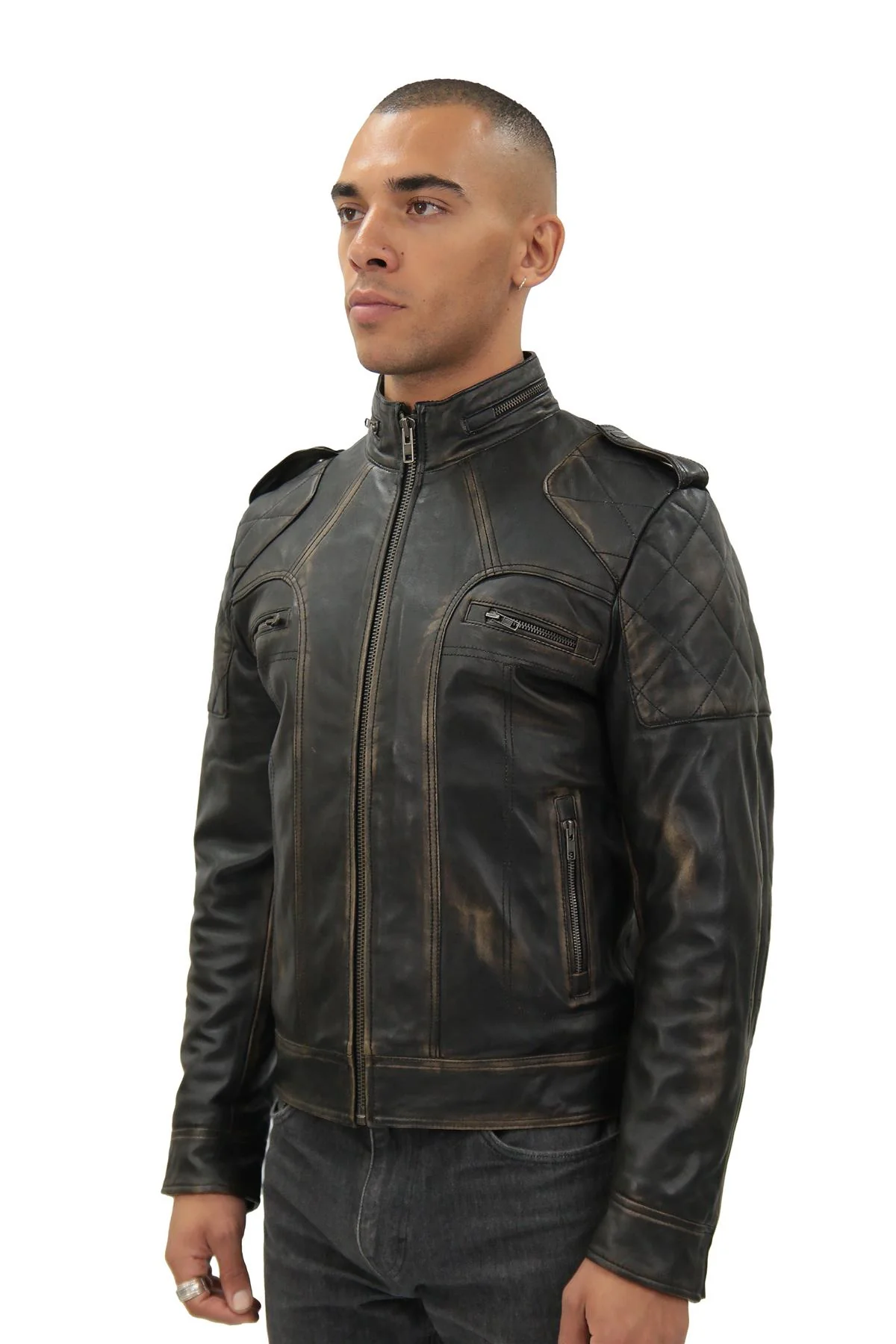 Mens Vintage Leather Racing Biker Jacket-Brooklyn