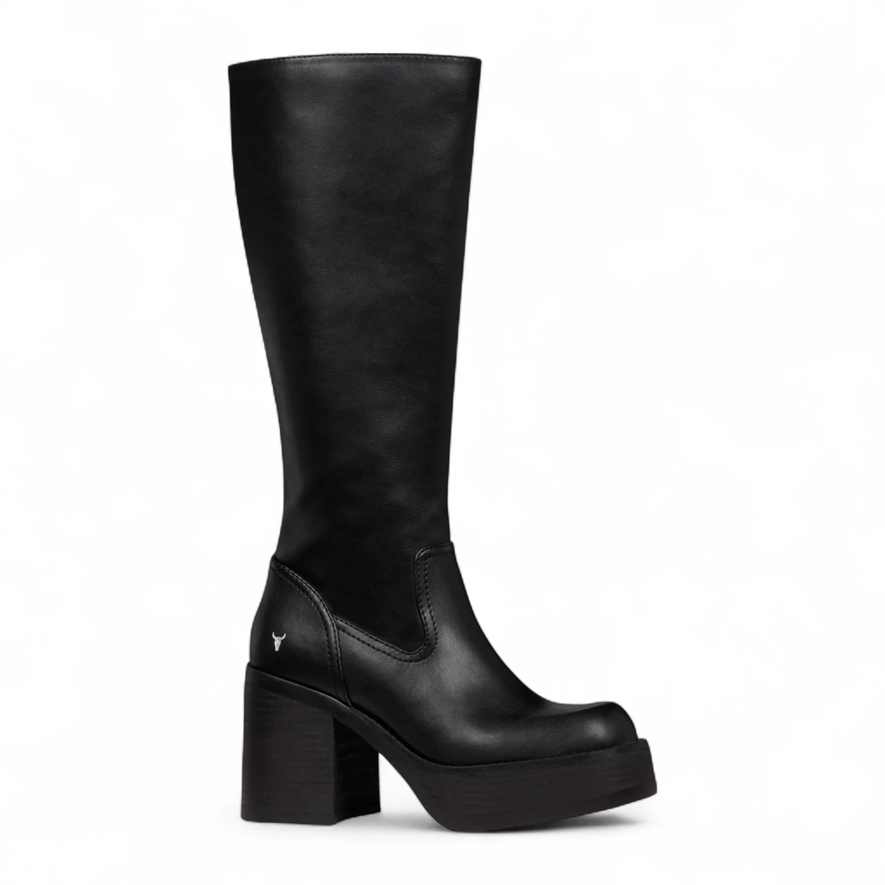 Windsorsmith Womens Black Faux Leather Knee-High Platform Heel Boots - Niche