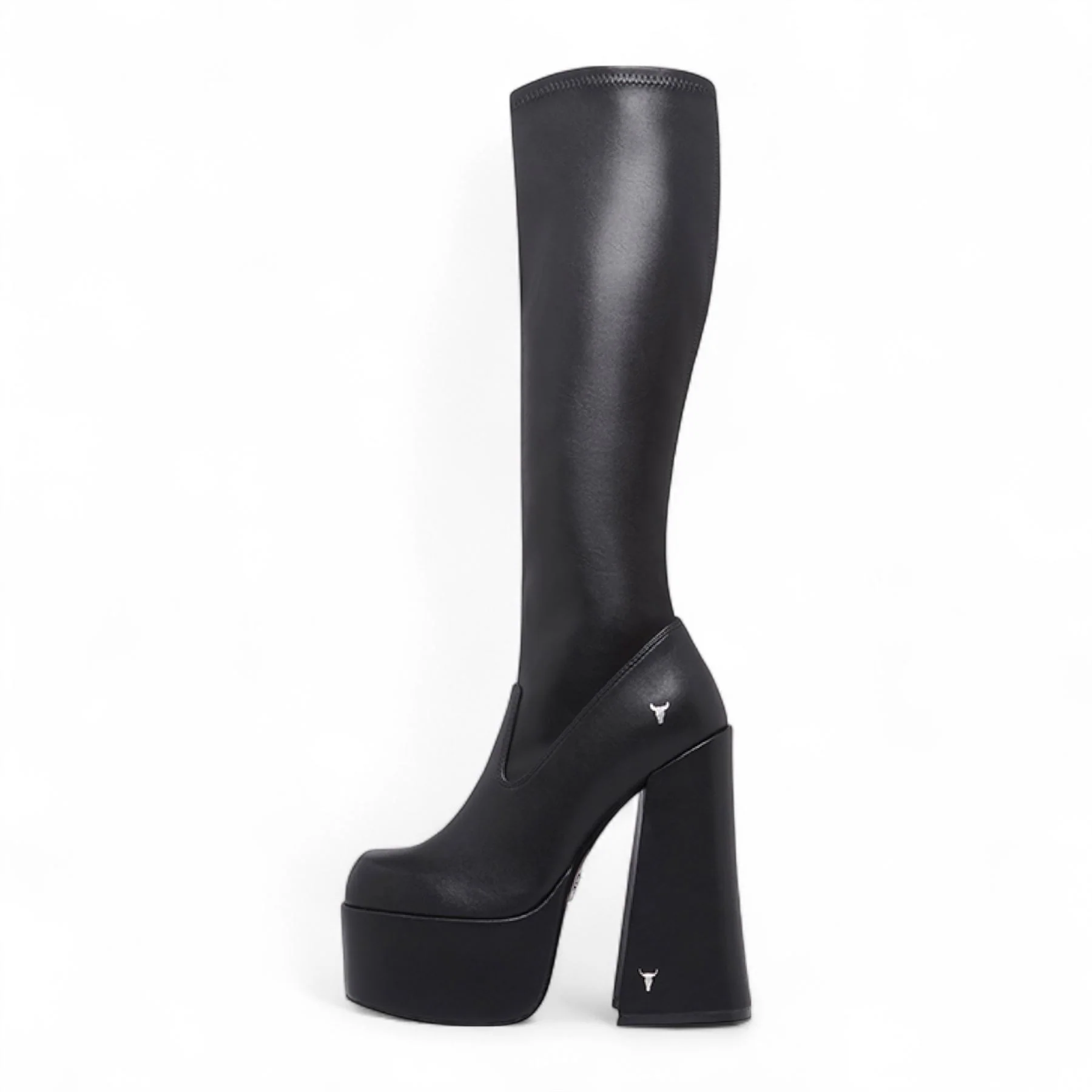 Windsorsmith Womens Black Knee-High Sock Platform Goth Heel Boots - Survival