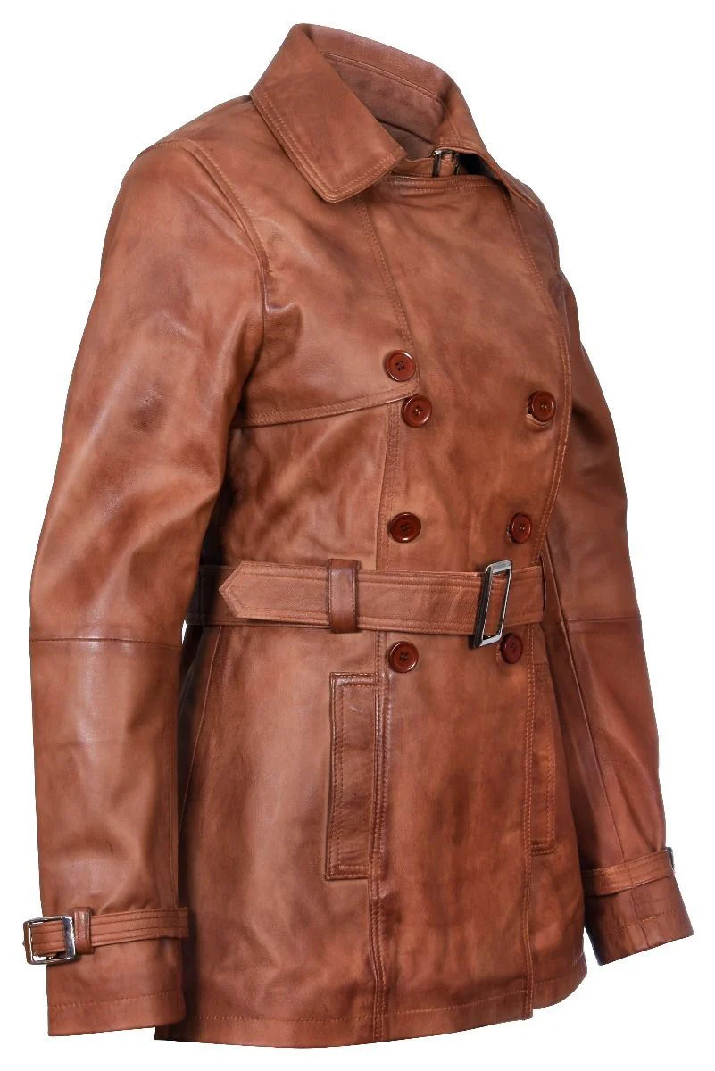 Womens Mid Length Leather Trench Coat -Oakham